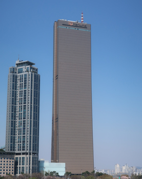 The DLI 63 Building is clad in gold-tinted glass and tapers gently as it rises. The lower floors contain an aquarium and theatre and the top floor has an observation deck. Although the observation deck is on the 63rd floor there are only 60 floors above ground. It became the tallest building in Asia when completed, but was overtaken as Seoul's tallest by the Mokdong Hyperion Tower in 2002. |